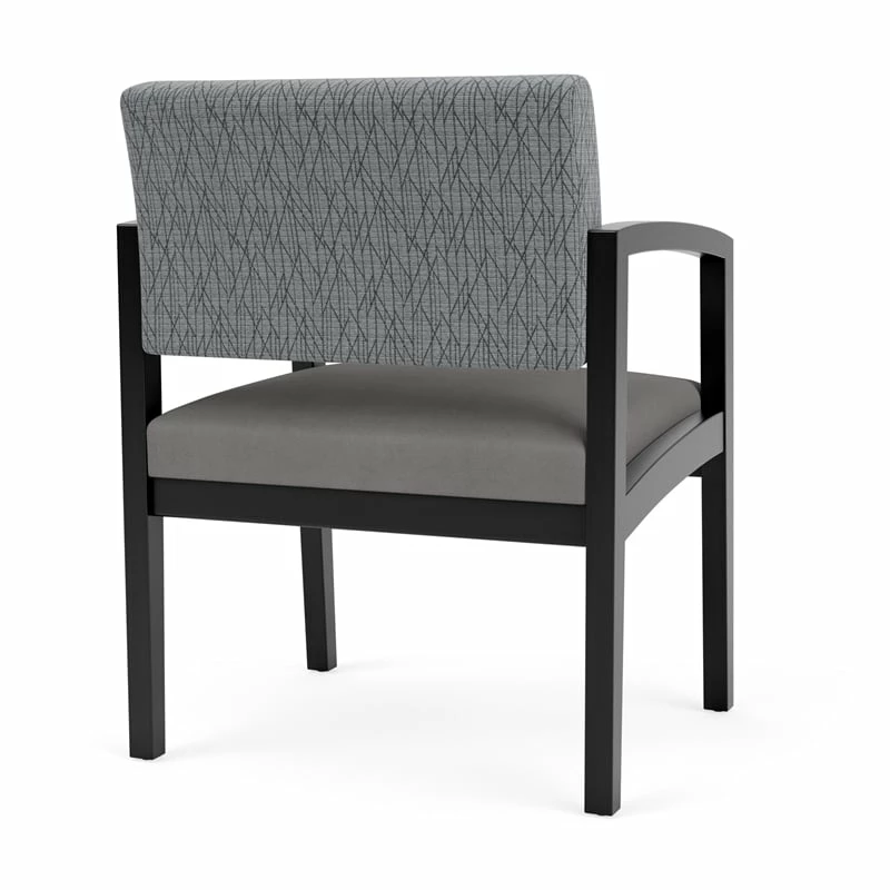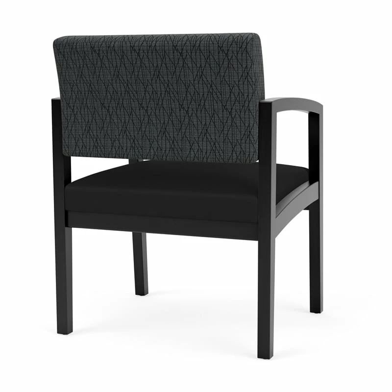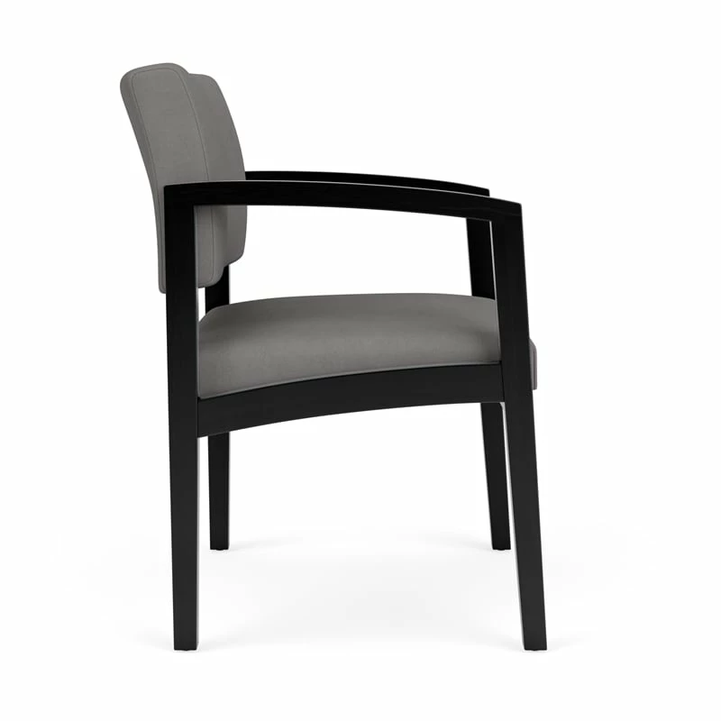 The Lenox Wood oversize guest chair with its graceful transitional styling, gently sloped arm design, and upholstered seat and back cushions will give your space a light, airy look. Features include sturdy hardwood construction, durable lacquer finish, and a comfortable Matrex seat support system. Available in stain-resistant solid fabric, alluring designer fabric, and easy-clean, heavy-duty vinyl and polyurethane upholstery options.