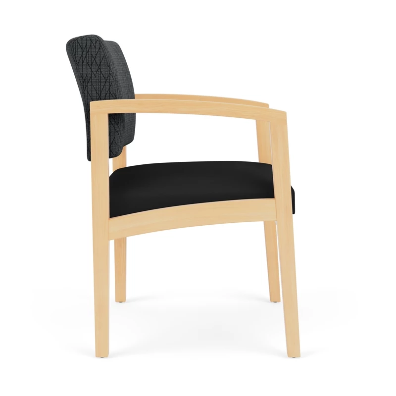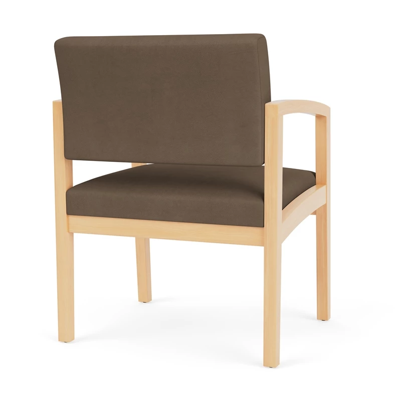 The Lenox Wood oversize guest chair with its graceful transitional styling, gently sloped arm design, and upholstered seat and back cushions will give your space a light, airy look. Features include sturdy hardwood construction, durable lacquer finish, and a comfortable Matrex seat support system. Available in stain-resistant solid fabric, alluring designer fabric, and easy-clean, heavy-duty vinyl and polyurethane upholstery options.