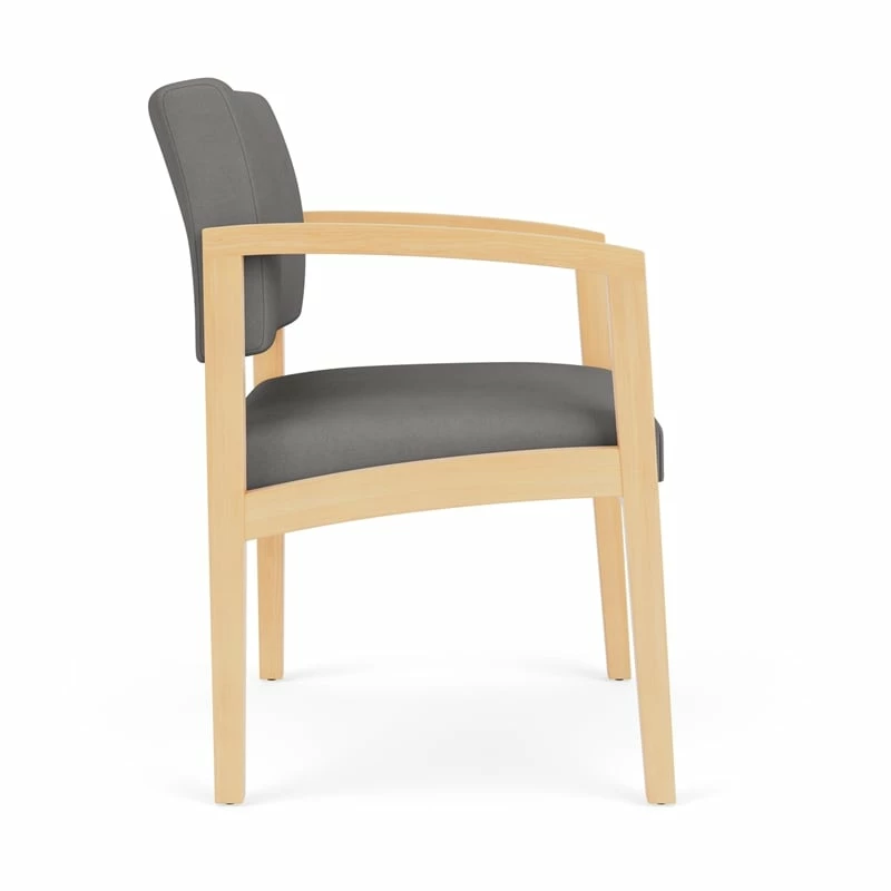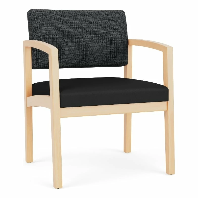 The Lenox Wood oversize guest chair with its graceful transitional styling, gently sloped arm design, and upholstered seat and back cushions will give your space a light, airy look. Features include sturdy hardwood construction, durable lacquer finish, and a comfortable Matrex seat support system. Available in stain-resistant solid fabric, alluring designer fabric, and easy-clean, heavy-duty vinyl and polyurethane upholstery options.