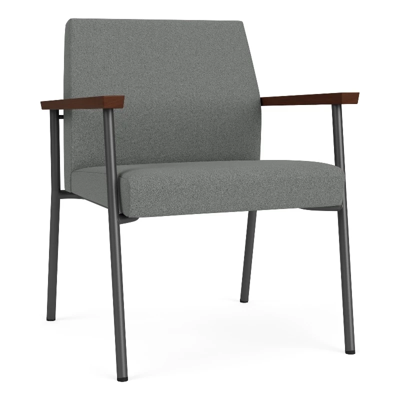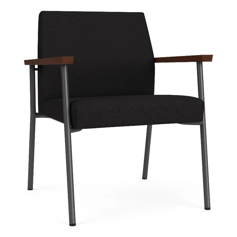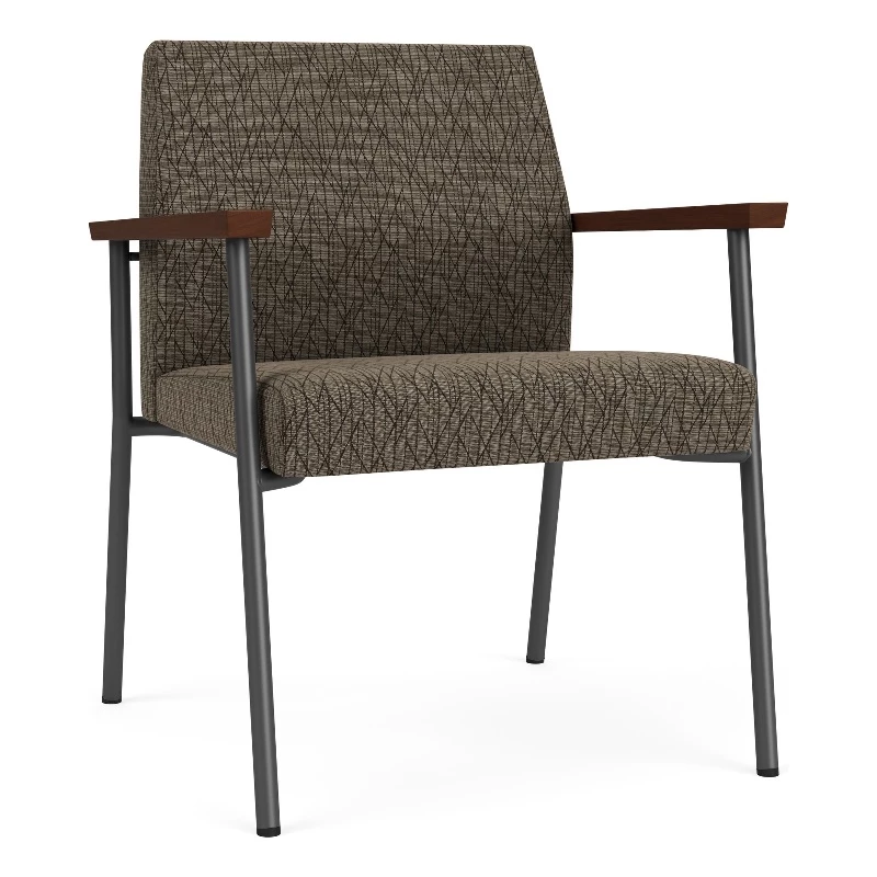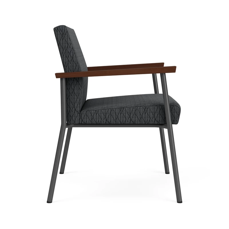 The Mystic oversize guest chair with its refined, tapered back and striking geometric arm design will give your space a clean, contemporary look. Features include sturdy steel construction, solid hardwood armrests with durable lacquer finish, and a comfortable Matrex seat support system. Alluring upholstery options.
