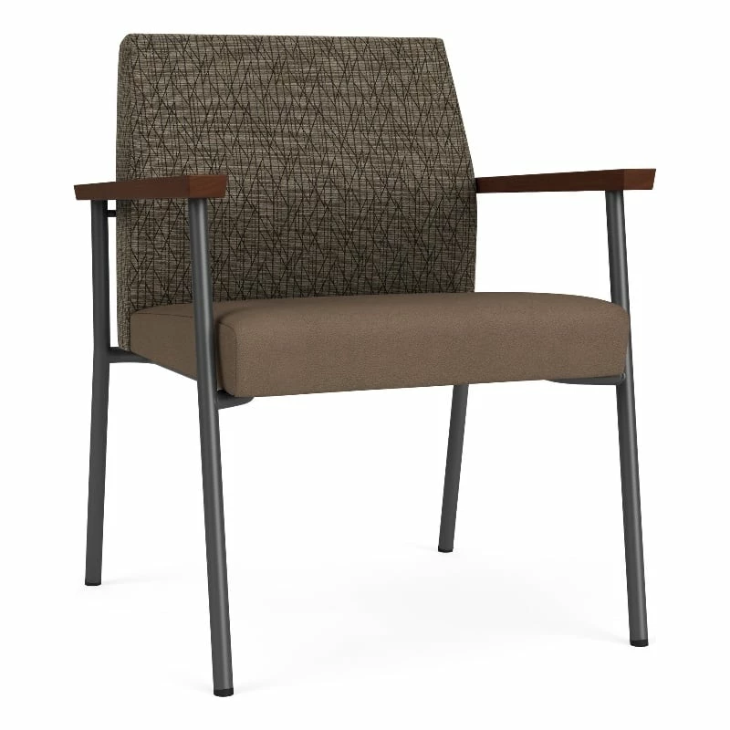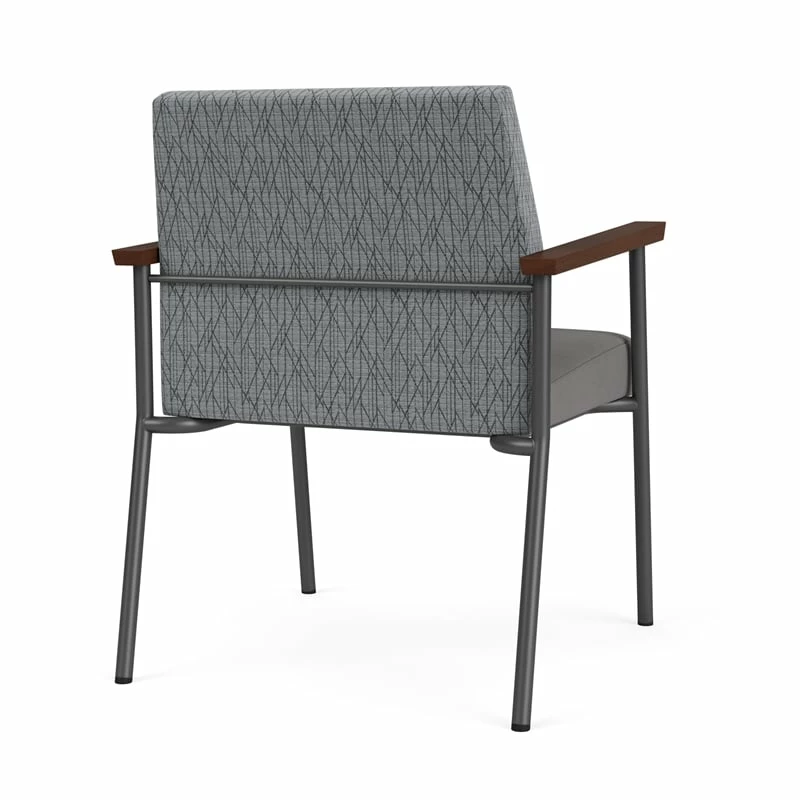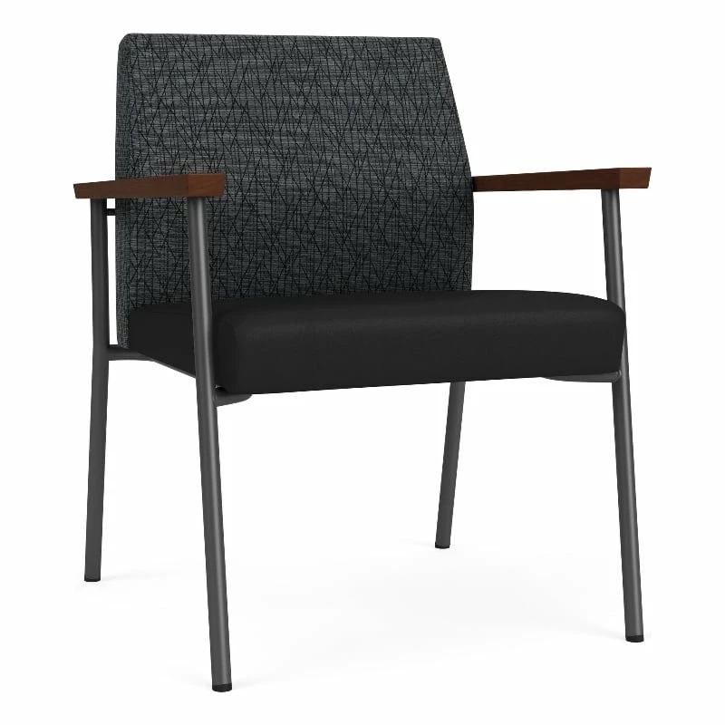 The Mystic oversize guest chair with its refined, tapered back and striking geometric arm design will give your space a clean, contemporary look. Features include sturdy steel construction, solid hardwood armrests with durable lacquer finish, and a comfortable Matrex seat support system. Alluring upholstery options.