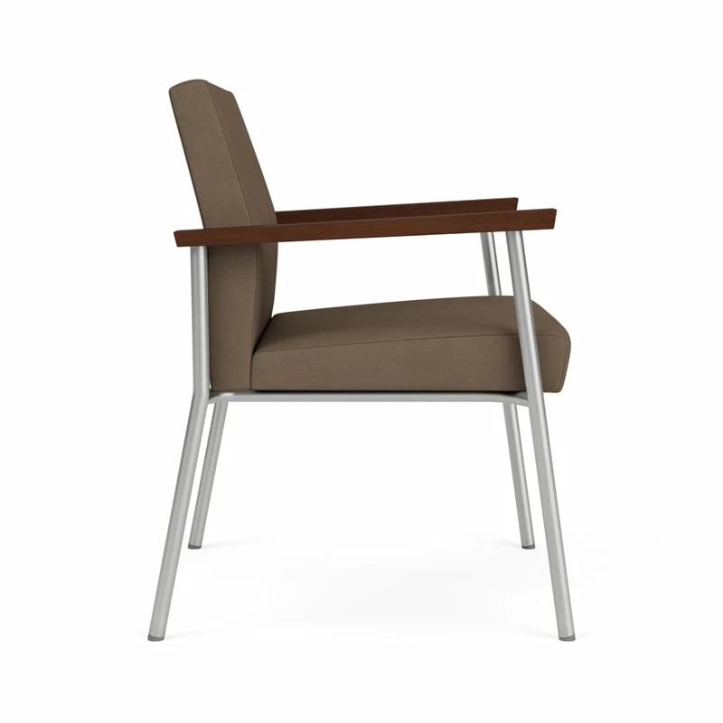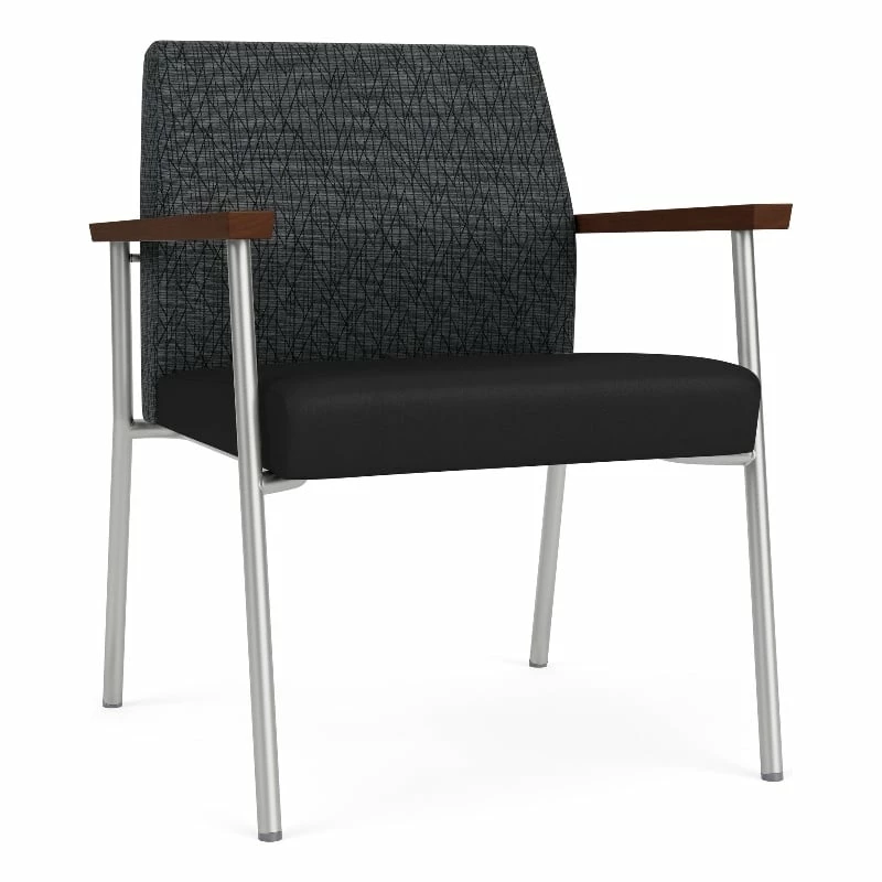 The Mystic oversize guest chair with its refined, tapered back and striking geometric arm design will give your space a clean, contemporary look. Features include sturdy steel construction, solid hardwood armrests with durable lacquer finish, and a comfortable Matrex seat support system. Alluring upholstery options.