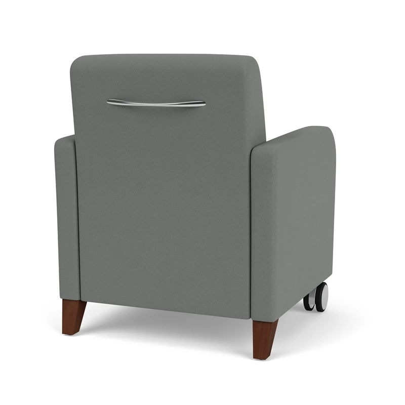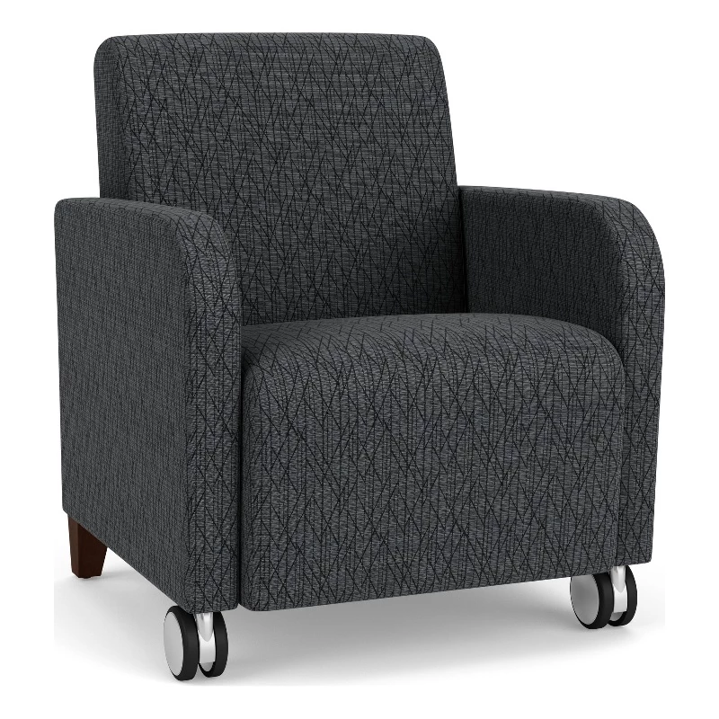 The Siena guest chair with front casters is generously sized with fully-upholstered seat and back cushions for long-life comfort. Siena’s graceful, transitional curved arm design will give your space a sophisticated look. Features include a comfortable Matrex seat support system, heavy-duty construction, and front leg casters for easy repositioning, providing years of reliable use, even in high traffic environments.