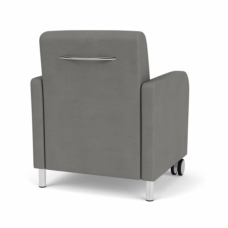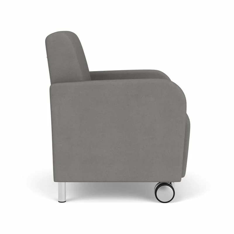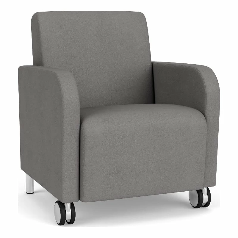 The Siena guest chair with front casters is generously sized with fully-upholstered seat and back cushions for long-life comfort. Siena’s graceful, transitional curved arm design will give your space a sophisticated look. Features include a comfortable Matrex seat support system, heavy-duty construction, and front leg casters for easy repositioning, providing years of reliable use, even in high traffic environments.