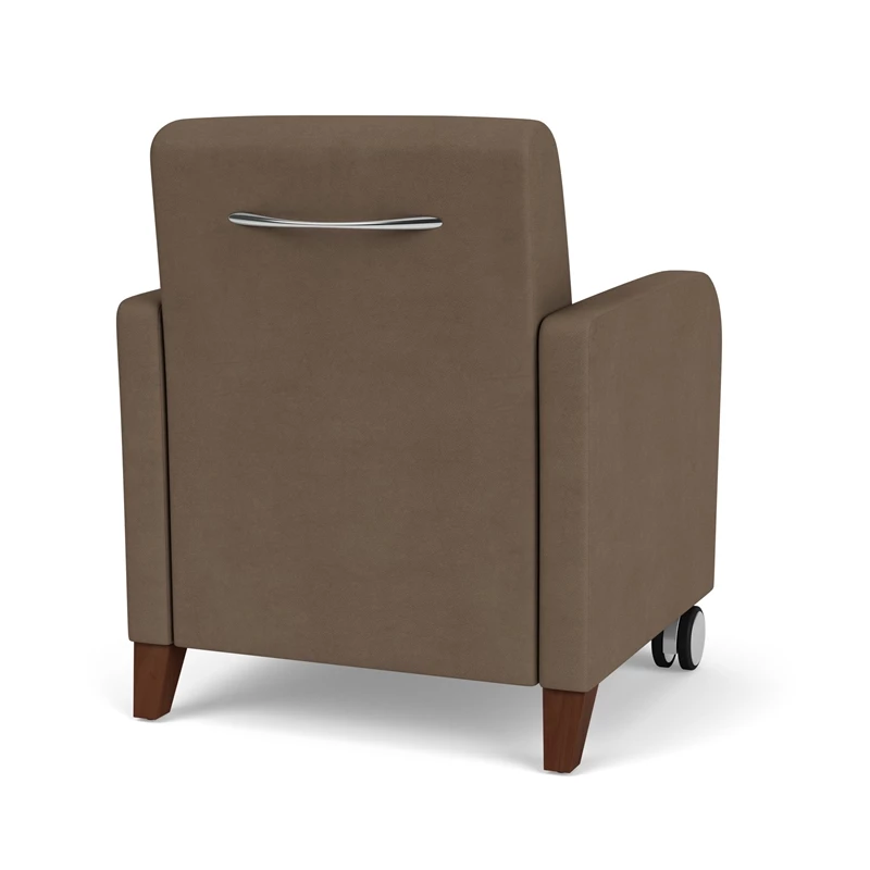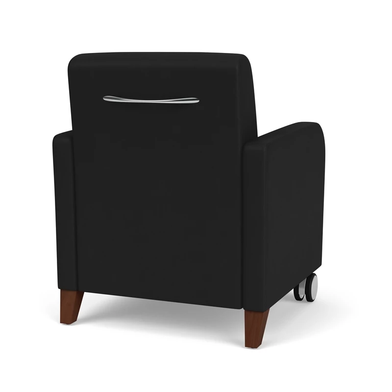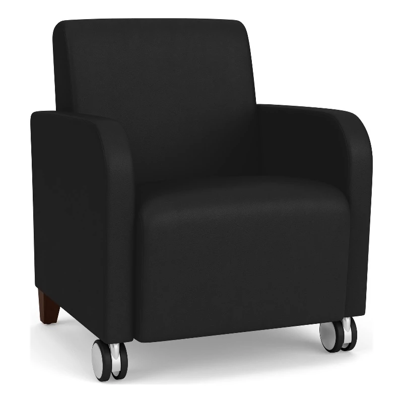 The Siena guest chair with front casters is generously sized with fully-upholstered seat and back cushions for long-life comfort. Siena’s graceful, transitional curved arm design will give your space a sophisticated look. Features include a comfortable Matrex seat support system, heavy-duty construction, and front leg casters for easy repositioning, providing years of reliable use, even in high traffic environments.