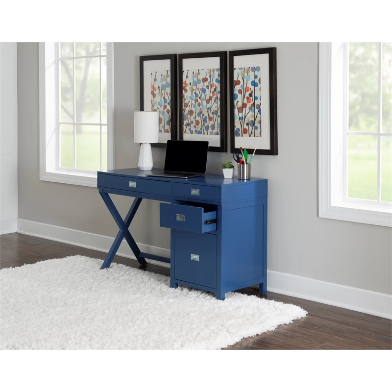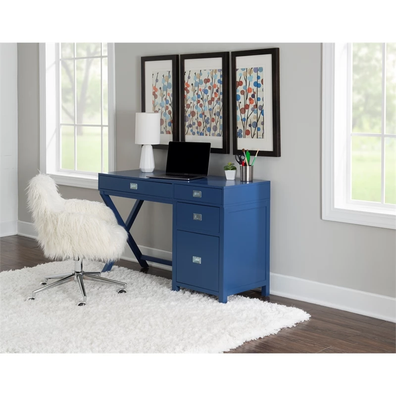 Gain new levels of control over your productivity and organization with this sleek desk and storage combination. The 48” x 18” design provides an ample workspace without overcrowding your home office or bedroom. 3 drawers and a larger storage drawer seamlessly tucked under the desk and equipped with shiny rose gold metal handles. The modern white finish pairs well with today’s cutting edge decor, but is subtle enough to blend with almost any other setting.