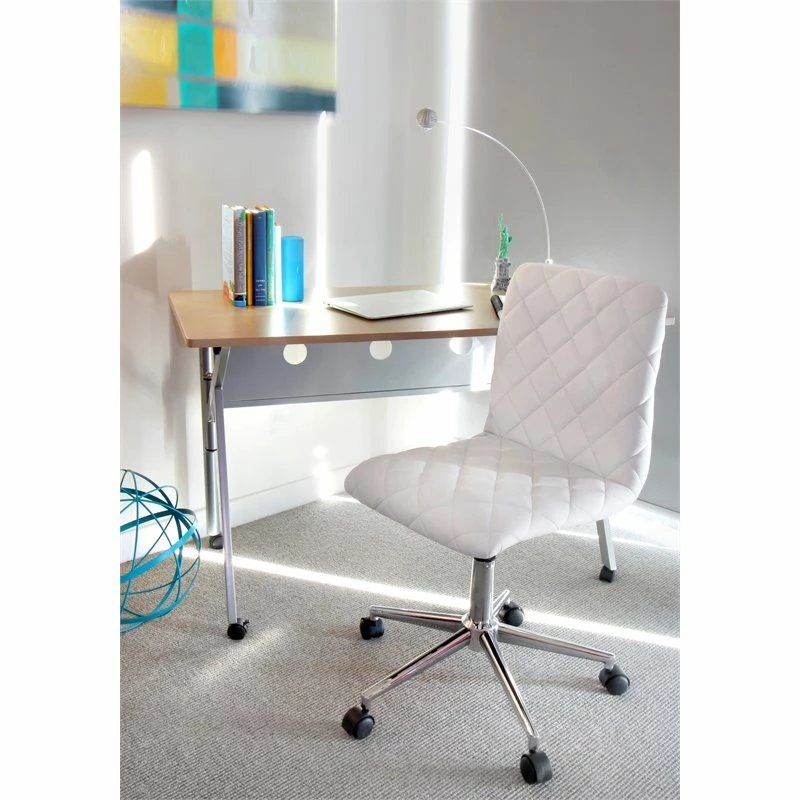 A sleek and modern angle exemplifies the contemporary flair of the Caviar Office Chair. This office essential is built for function and exudes style as it sports a faux leather finish and quilted pattern.