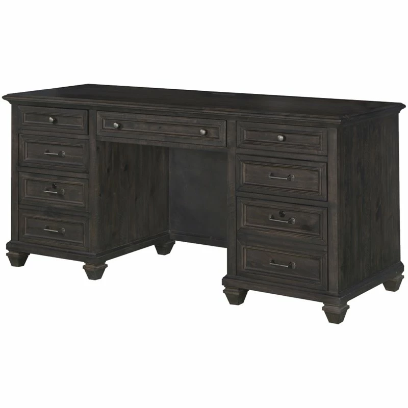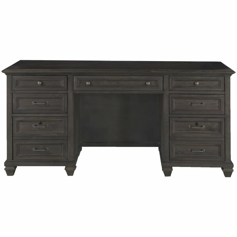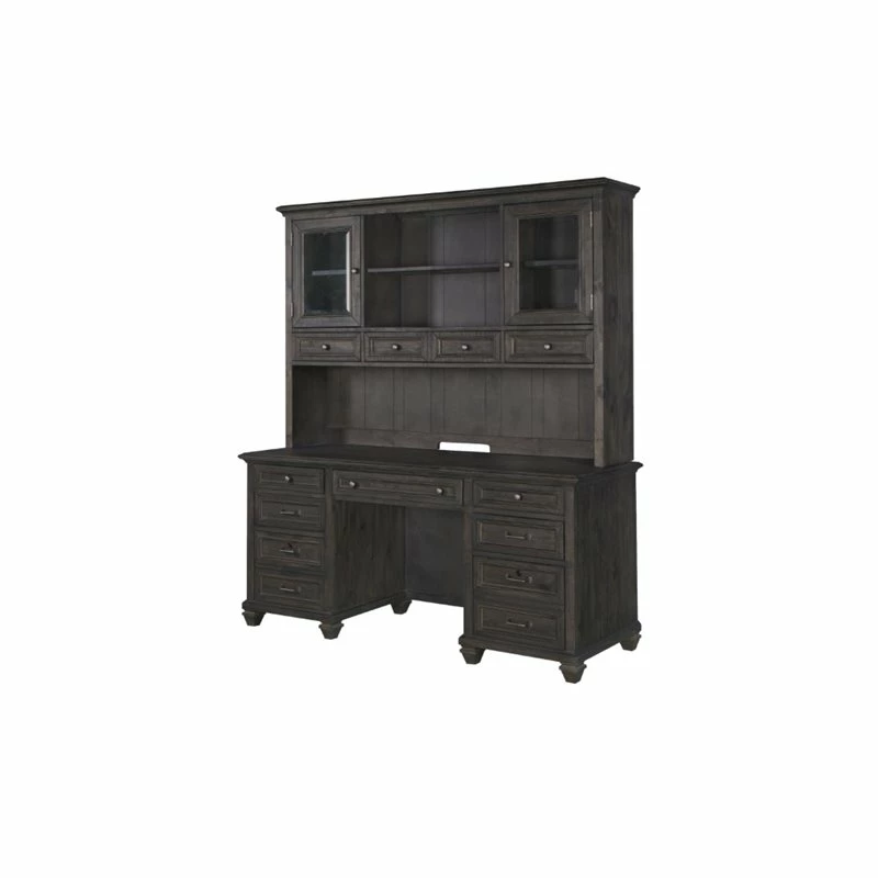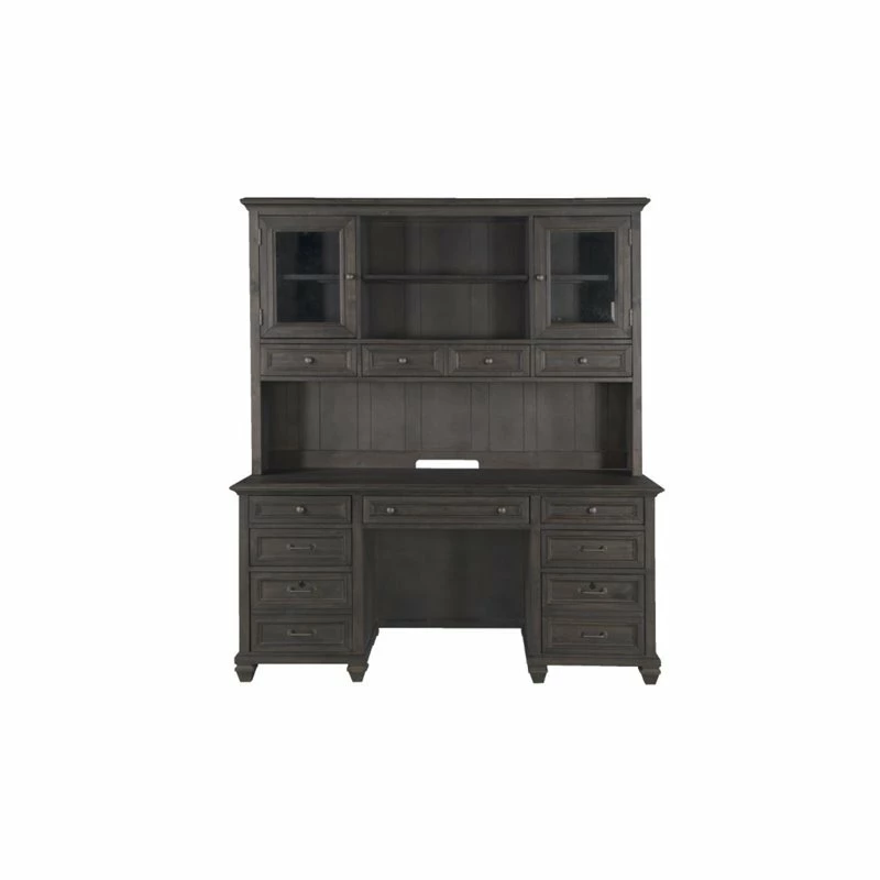 A rustic European vibe present in the weathered charcoal finish and Continental inspired details adds appeal and interest to the Sutton Place home office. Felt lined top drawers, side mount ball bearing guides, English and French dovetailed drawer construction, and the highest quality construction standard to Magnussen Home. The collection features a variety of desk options with plenty of storage.