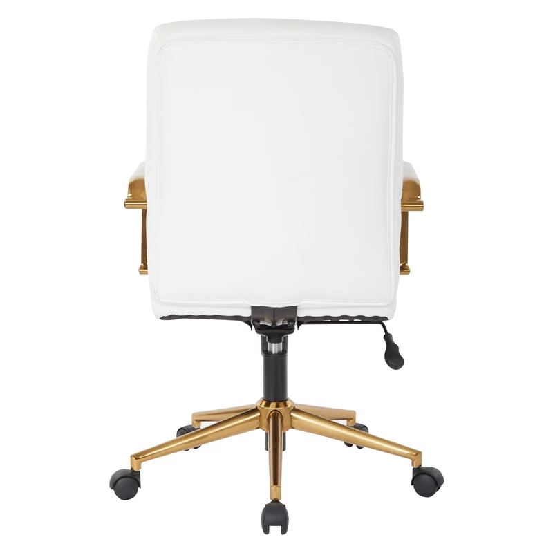 Mid-Back White Faux Leather Chair with Gold Finish Arms and Base K/D