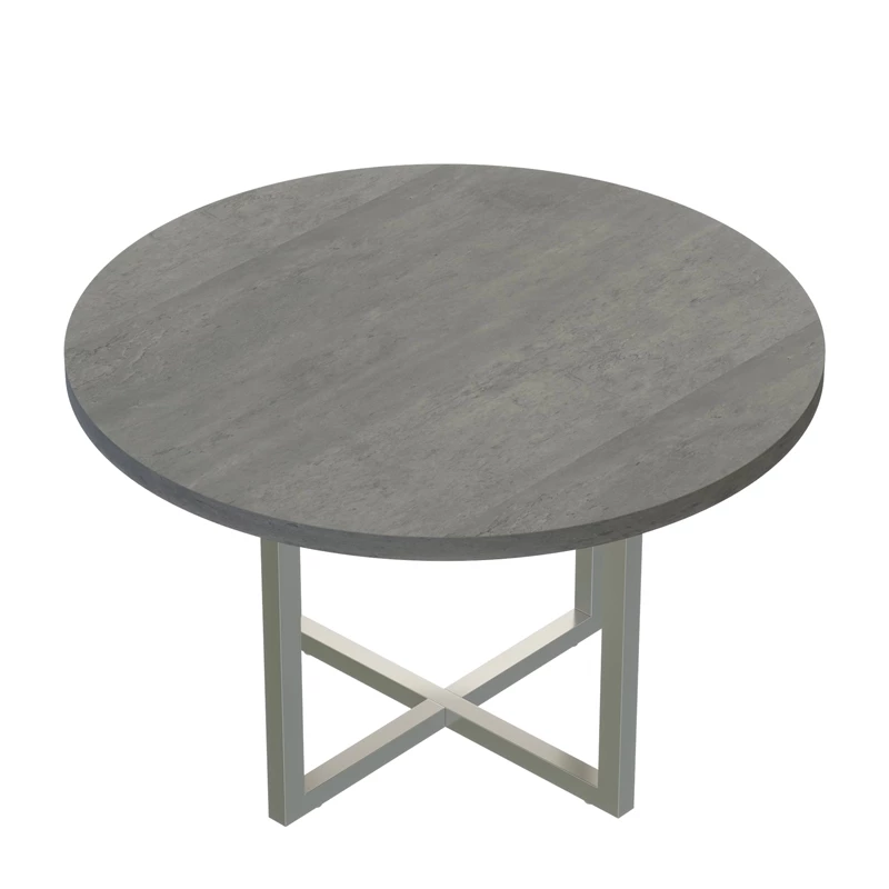 Mirella™ Conference Table, 42” (Table & Base) features a contemporary design that provides a residential look, complemented with Brushed-Silver or Black Powder Southern Tobacco laminates come with Black hardware, and White Ash and Stone Gray laminates come with Silver. Coat accents and finishes. Showcases a sturdy 1 5/8” work surface, and a separate Metal Base and top to the structure. The table coordinates with Mirella™ Desking and Reception units for a consistent and professional appearance.