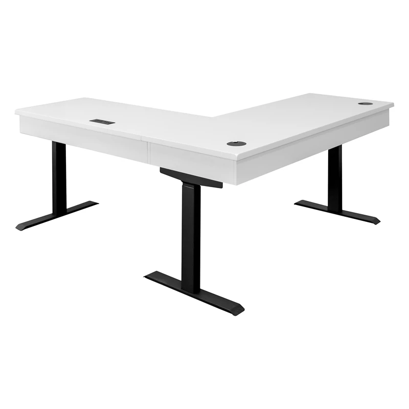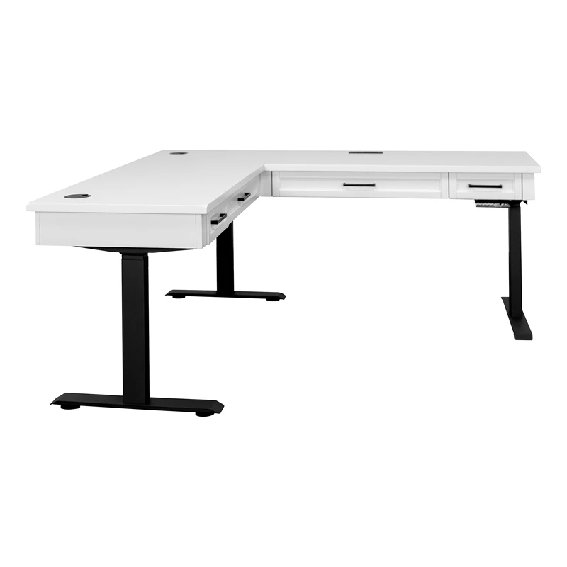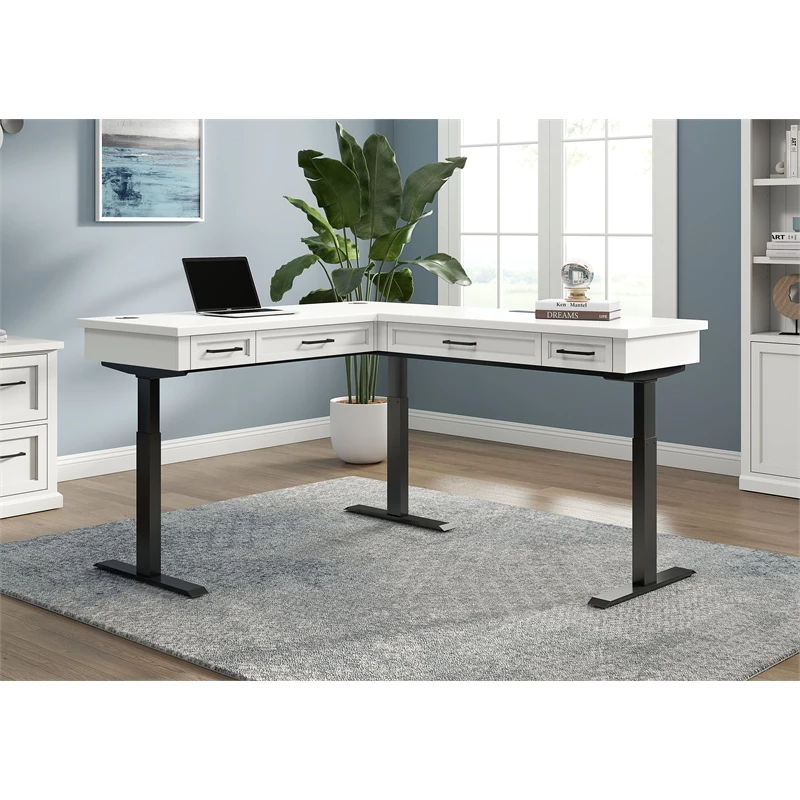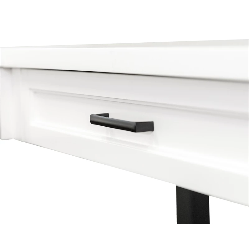 The Abby collection blends modern versatility with classic looks. Simple refined details such as modern shaker doors and bead board panels are accentuated with simple black hardware and a crisp white finish. Behind each door or drawer, you will find the quality and functionality you’ve come to expect from Martin Furniture. Ergonomic design and current technology have been thoughtfully integrated into this collection with adjustable height desks and built-in power centers. Abby white wood desk is clean and elegant, perfect for shared family spaces that can be combined in any arrangement to create your ideal home office, media room or workspace.