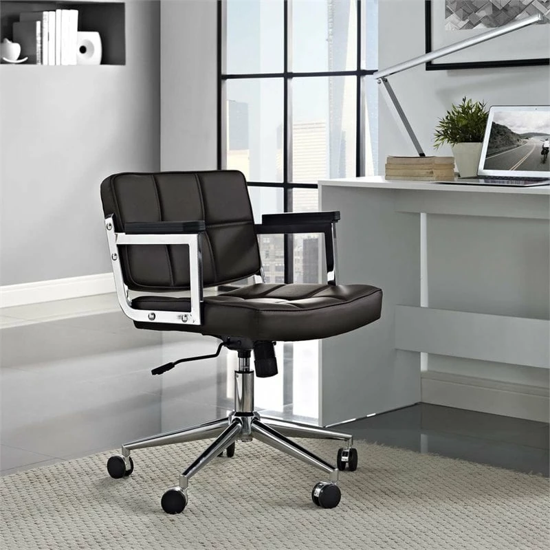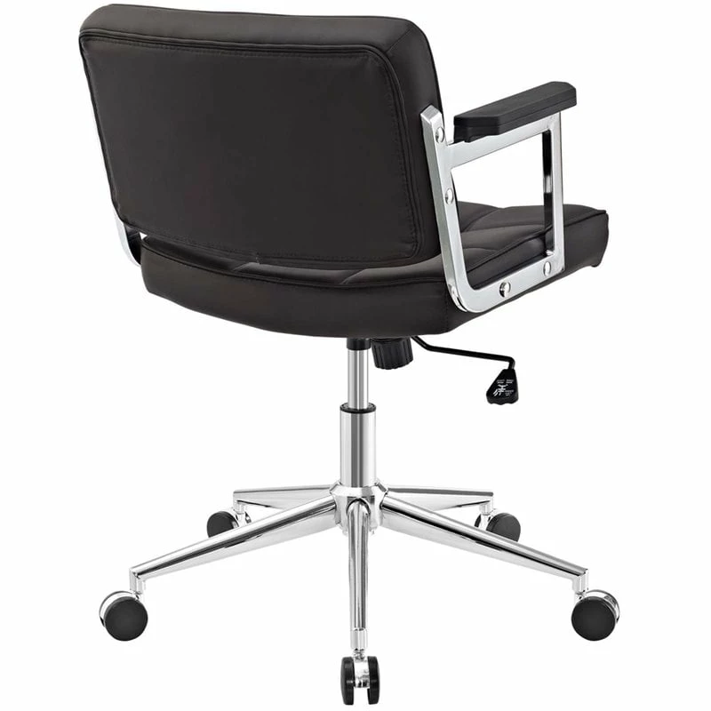 Make a striking statement with the Portray Mid Back Office Chair. Boldly designed with an impressive tiled design and sharp look, Portray boats comfortable dense foam padding and a stunning chrome steel frame and base. Featuring five dual wheel casters for enhanced stability and easy mobility over hardwood or carpeted surfaces, Portray is an exquisite example of what a modern office chair should be. Complete with tilt tension control and one-touch height adjustment, Portray is perfect for the progressive, inspired office setting.