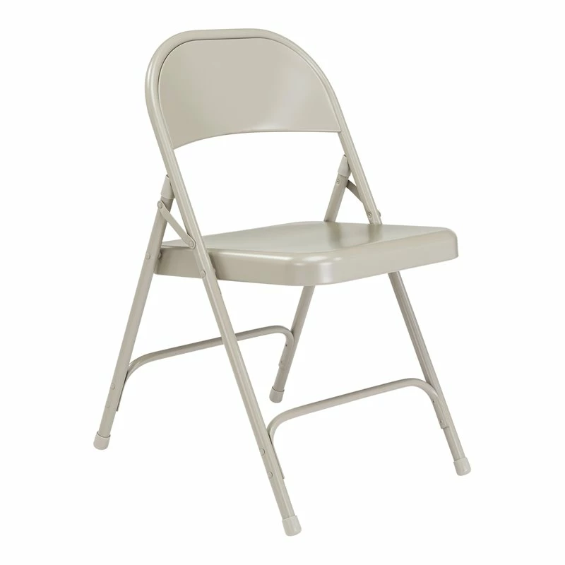 Our 50 Series standard all-steel institutional-grade folding chair features a heavy-duty powder-coated 19-gauge tubular frame with a 2.5″ frame strengthener on each side of the seat. Two double-riveted U-braces – one in front and one in back – securely support the single-hinged legs. The seat is designed with a waterfall-style front for added comfort. A round contoured backrest features curled safety edges and is electromagnetically tack-welded to the frame. Color-coordinated V-tip stability plugs provide added reinforcement at the frame’s junction and matching replaceable glides prevent floor damage. The 50 Series meets MAS Certified Green and ANSI/BIFMA standards.