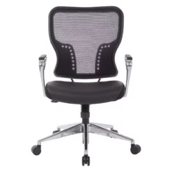 Air Grid Back And Padded Black Bonded Leather Seat With Padded Aluminum Arms