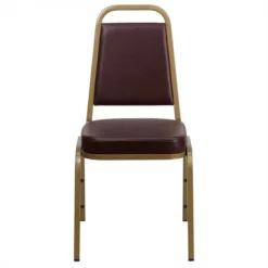 Bowery Hill Vinyl/Metal Trapezoid Back Banquet Stacking Chair In Brown