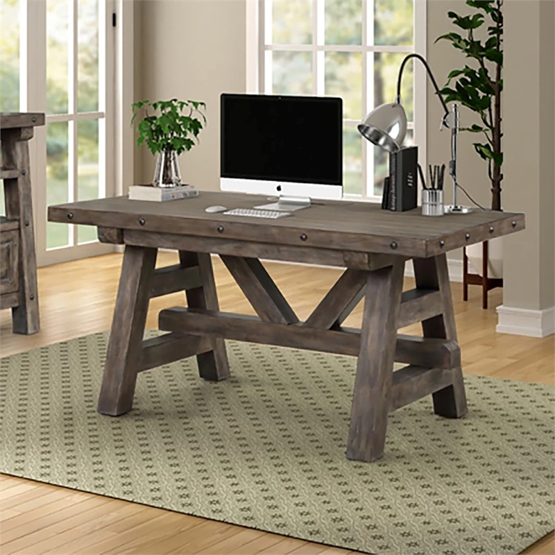 Enjoy a workspace that’s both smart and stylish with this Writing Desk from the Lodge collection. Whether you’re working from home or organizing household projects, you’re sure to appreciate its Power Center with dual AC outlet and dual USB port. A hand-applied, multi-step finish in Siltstone captures the beauty of the great outdoors in shades of slate, charcoal and sand and accentuates its bold profile while iron-inspired accents adding a decorator touch.