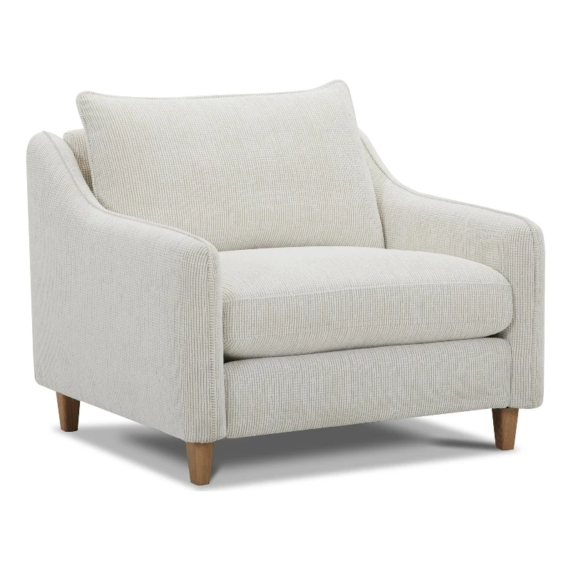 Whether you’re curling up with a book or entertaining guests, our Chair and a Half provides the perfect combination of comfort and style. The wood feet in a natural finish add a distinctive touch and lend a modern vibe to the design. Exquisitely tailored and upholstered in a durable, 100-percent polyester fabric with rich texture and velvety softness, this chair provides a cozy and luxurious seating experience. The seat cushions are padded with high-density Dacron and topped with sterilized down and feathers for maximum plushness, while the seating features no-sag springs and high-density webbing for long-lasting support. The wood frames feature reinforced corner blocks for lasting strength and stability, and select woods are kiln-dried to minimize warping and splitting while ensuring longevity. The seat cushions are encased in cotton, down-proof channeled ticking to help them keep their shape and prevent feather migration.