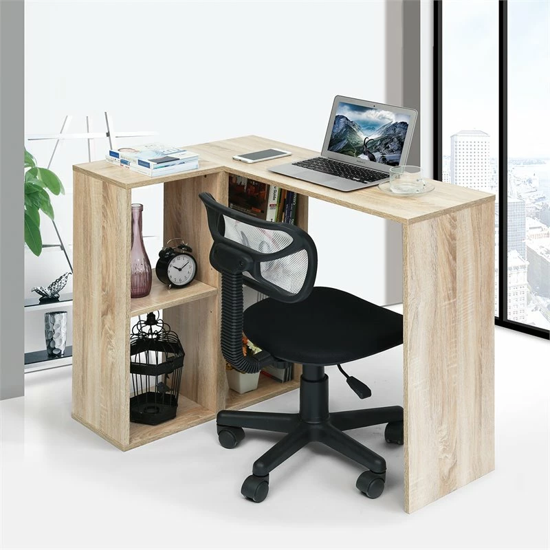 This reversible L-Shape corner computer desk will be a stunning focal point in your contemporary home office. The shelf can swap the left side with the right to fit your space perfectly. With clean lines, thick panel construction, this office workstation desk is the perfect combination of function, versatility, and design in a modern form. The desktop offers a spacious work surface to meet your working needs without compromising style. The side surface offers an additional workspace with open concept adjustable shelves that can be used for additional storage. Don’t hesitate to take it home!