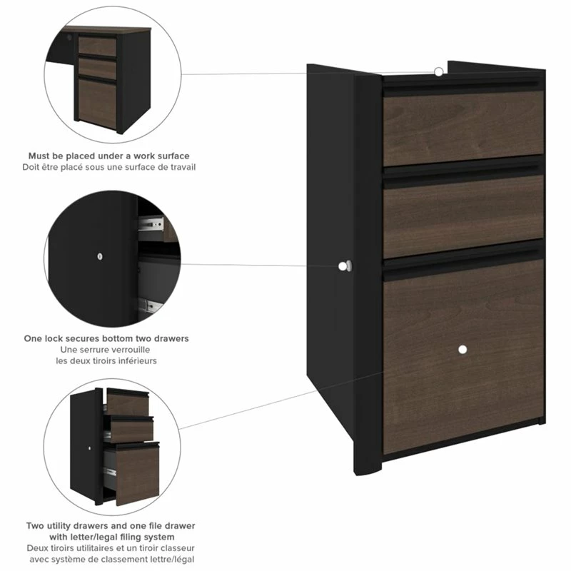 - The pedestal offers two utility drawers and one file drawer with letter/ legal filing system