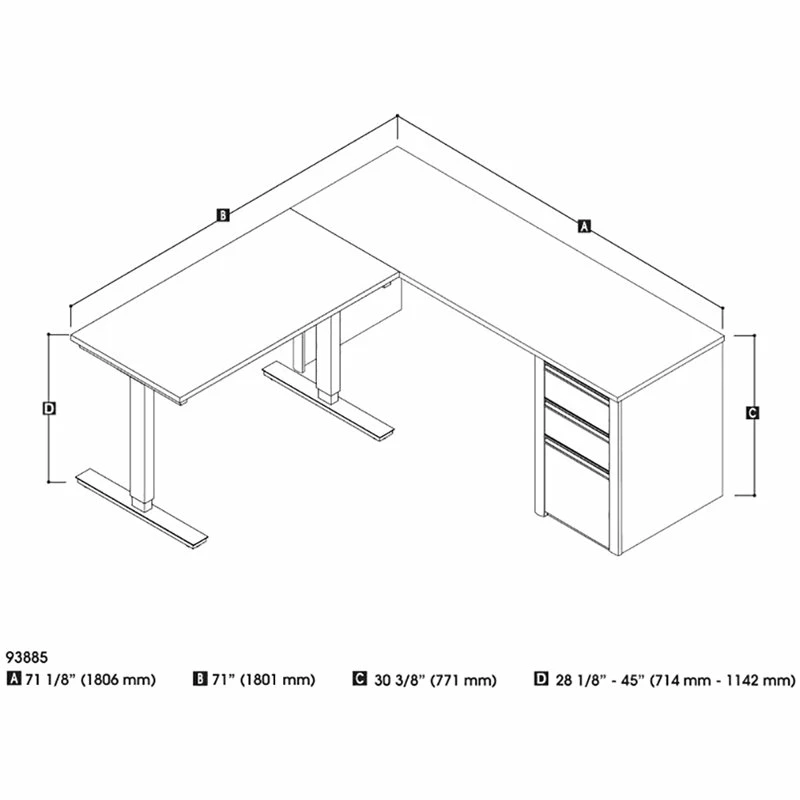 - Desk Dimensions : (Credenza) 30.4″ H x 71.1″ W x 23.3″ D