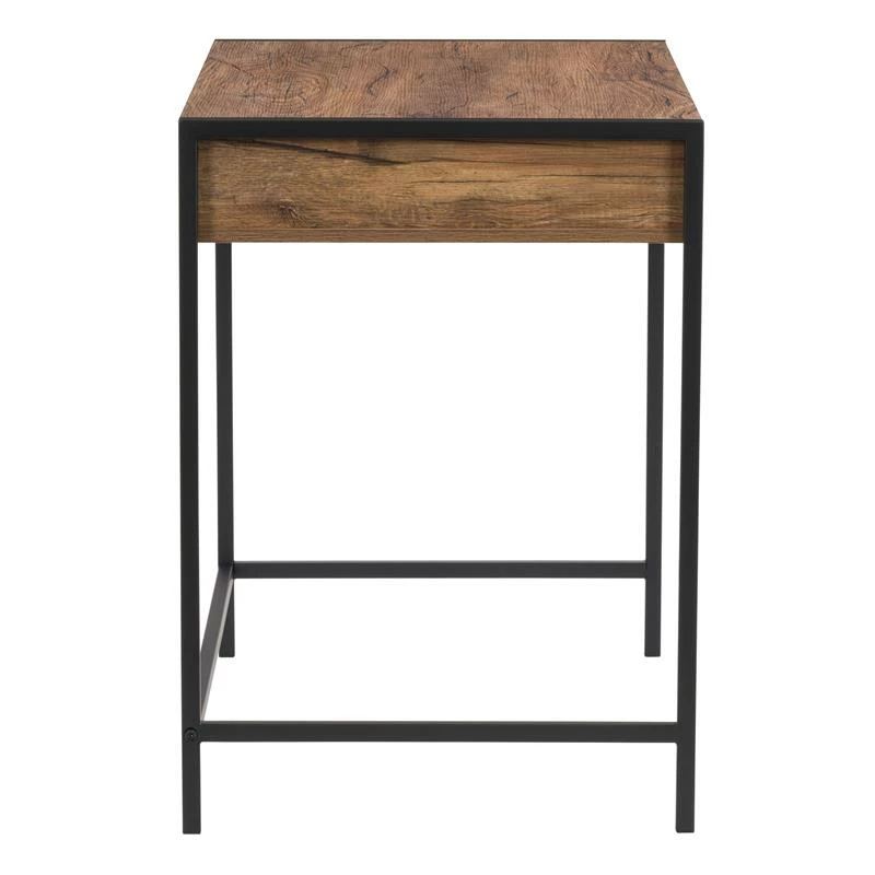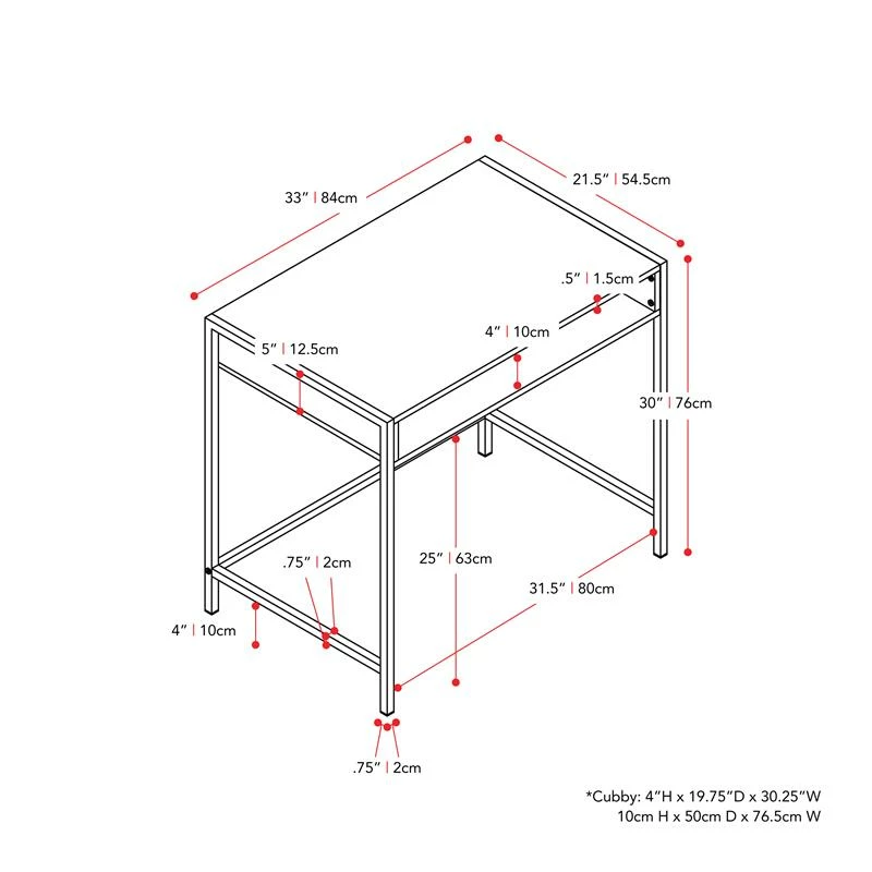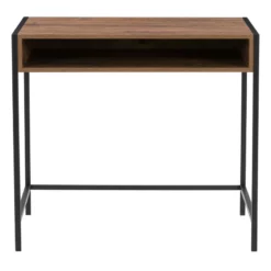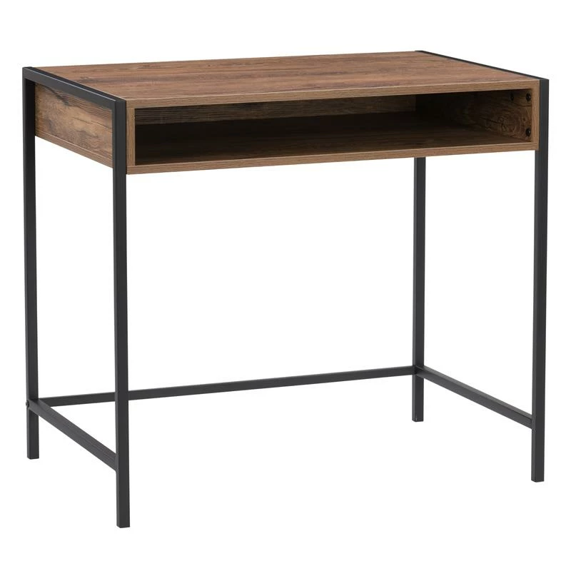 Clean lines and rustic accents, The perfect combination to update your home office. The sleek rectangular top in brown engineered wood allows for plenty of workspace for laptops and accessories. Functionality is found in the cubby shelf for extra storage, the perfect spot to store your mouse, notebooks, or keyboard when not in use. Black coated sleek metal legs complete the sleek rustic look, a trendy addition to any room.