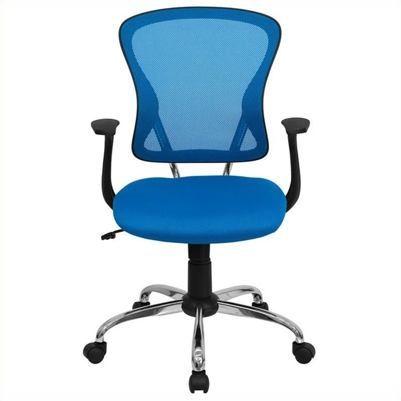 Having the right chair in your workspace is essential for your performance and well-being. Investing in a good task chair increases productivity, promotes good posture and gives a professional look to any office. This blue task chair is adjustable to accommodate many different body types. The breathable mesh back allows air to circulate to keep you cool. The colorful, generously padded mesh seat will add a vibrant, lively look to your space as well as keep you comfortable. A mid-back office chair offers support to the mid-to-upper back region. The waterfall front seat edge removes pressure from the lower legs and improves circulation while the arms take pressure off the shoulders. Chair easily swivels 360 degrees to get the maximum use of your workspace without strain. The pneumatic adjustment lever will allow you to easily adjust the seat to your desired height. The chrome base adds a stylish look to complement a contemporary office space. With its attractive styling and versatility, this chair is an excellent choice for the office, dorm, classroom or home.