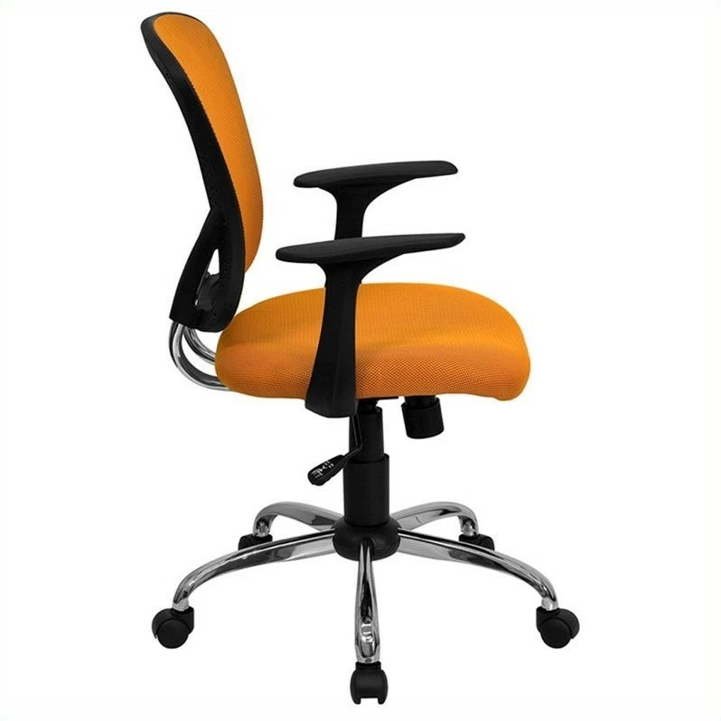 Having the right chair in your workspace is essential for your performance and well-being. Investing in a good task chair increases productivity, promotes good posture and gives a professional look to any office. This orange task chair is adjustable to accommodate many different body types. The breathable mesh back allows air to circulate to keep you cool. The colorful, generously padded mesh seat will add a vibrant, lively look to your space as well as keep you comfortable. A mid-back office chair offers support to the mid-to-upper back region. The waterfall front seat edge removes pressure from the lower legs and improves circulation while the arms take pressure off the shoulders. Chair easily swivels 360 degrees to get the maximum use of your workspace without strain. The pneumatic adjustment lever will allow you to easily adjust the seat to your desired height. The chrome base adds a stylish look to complement a contemporary office space. With its attractive styling and versatility, this chair is an excellent choice for the office, dorm, classroom or home.