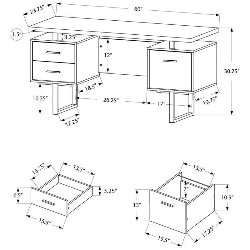 - Drawer Dimensions : (File – Interior) 10.5″H x 13.5″W x 17.25″D
