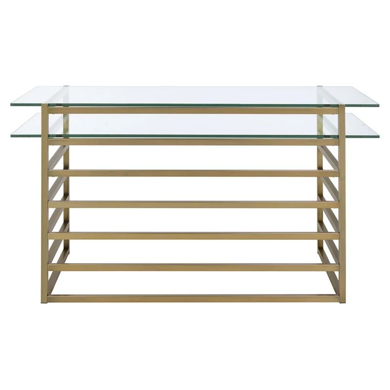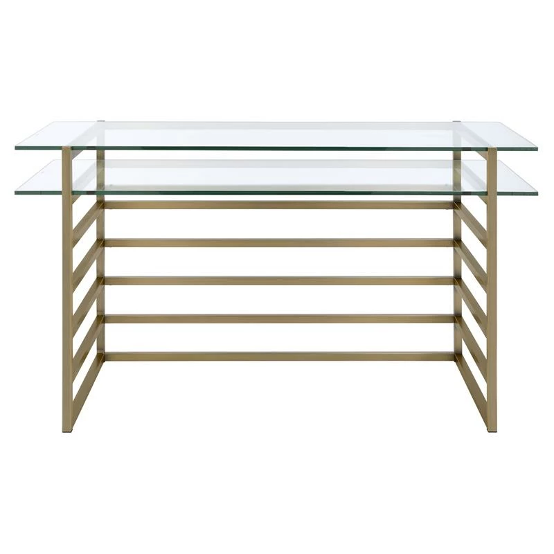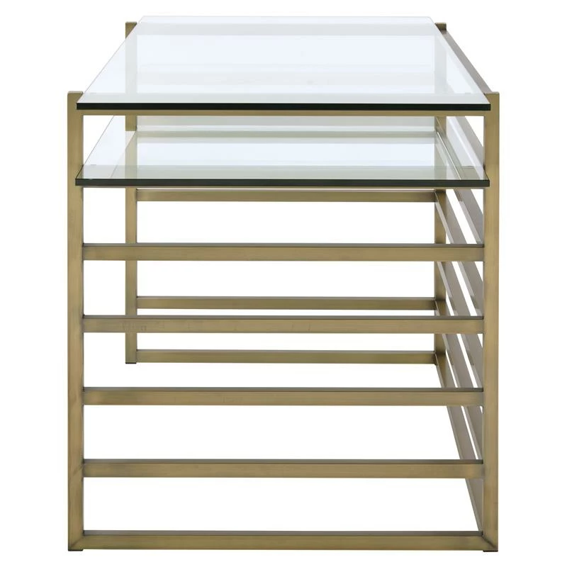 Whether you’re working from home or scrawling a quick to-do list, you’ll be doing it all in style with this desk. The luxurious glass top combines with antique gold finish base, this piece is not only elegant but also beautiful. Classic but glamorous, you’ll find efficiency when working on this writing desk.
