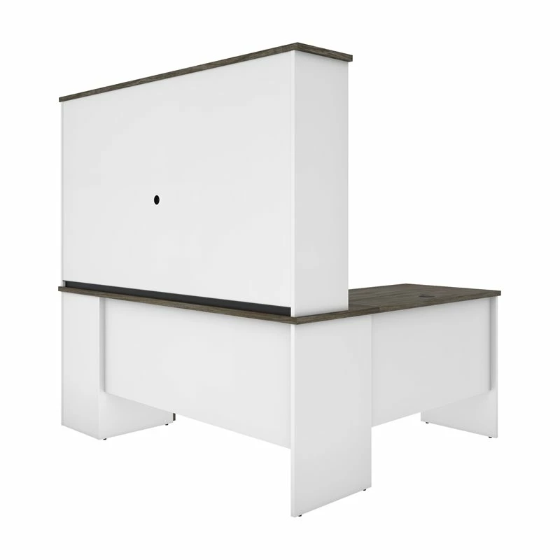 Create a functional and stylish workspace with the Pemberly Row L Shaped Computer Desk with Hutch in a tasteful combination of Walnut Gray and White. This L-shaped desk offers an ample work surface and a hutch for additional storage and organization. The contrasting colors enhance the modern aesthetics of your office decor, making it an ideal solution for professionals who value both functionality and visual appeal. Redefine your workspace with the Pemberly Row L Shaped Computer Desk with Hutch in Walnut Gray and White.