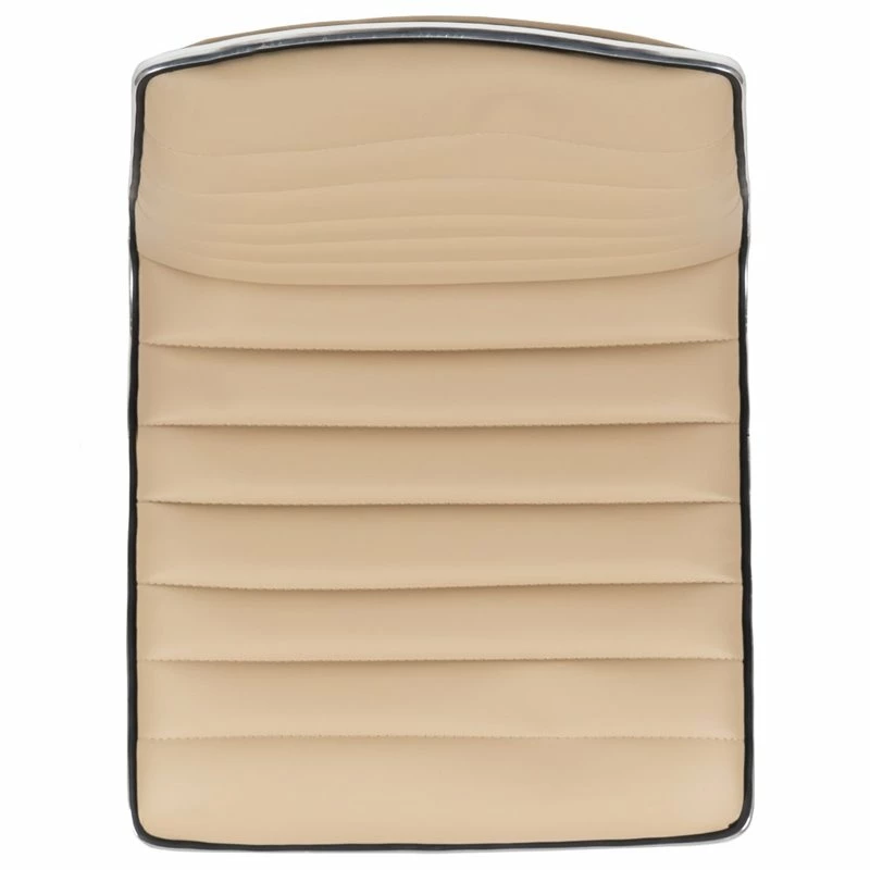 - Glossy Tan Vinyl Upholstery with Chrome Accent Border