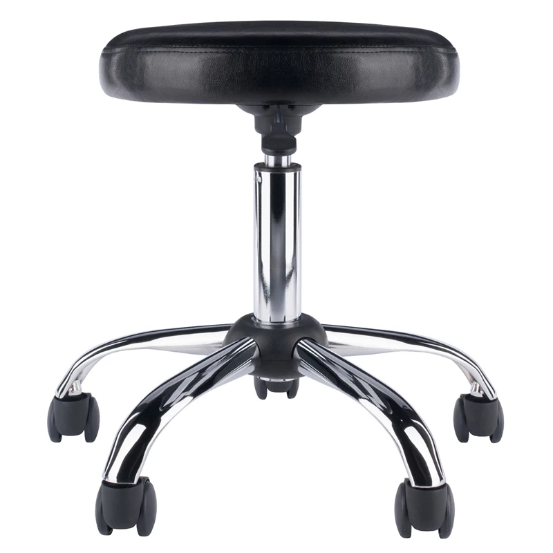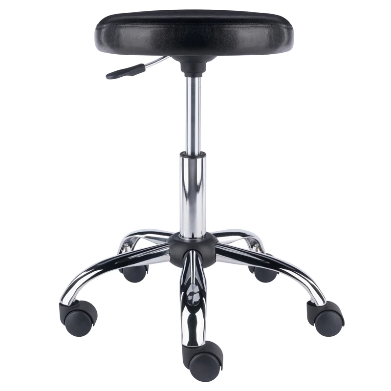 The Pemberly Row Wood Adjustable Swivel Seat Stool is the answer for your busy, multi-tasking life. Move easily from one work station to another in an office, salon, warehouse, or behind a retail counter. The hydraulic lift lets you raise or lower the seat from 18.3″” to 23″”H with a simple lever. And the seat rotates 360 degrees to suit whatever angle you need. The stool moves easily and smoothly on the hooded casters without scratching the floor. The cushioned seat is made of faux leather in a Black finish, complemented by the chrome base. Sturdy, but lightweight enough to move wherever you need flexible, mobile seating. Conveniently packed in one box with all the hardware needed for assembly.