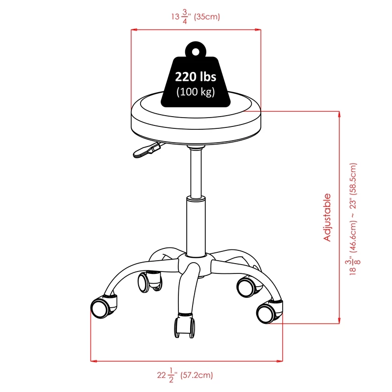 - Seat height adjustable 17.59″ to 22.32″ high.