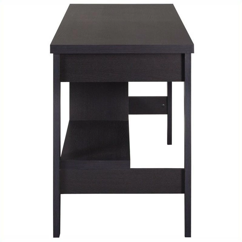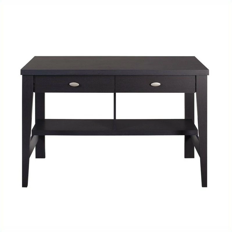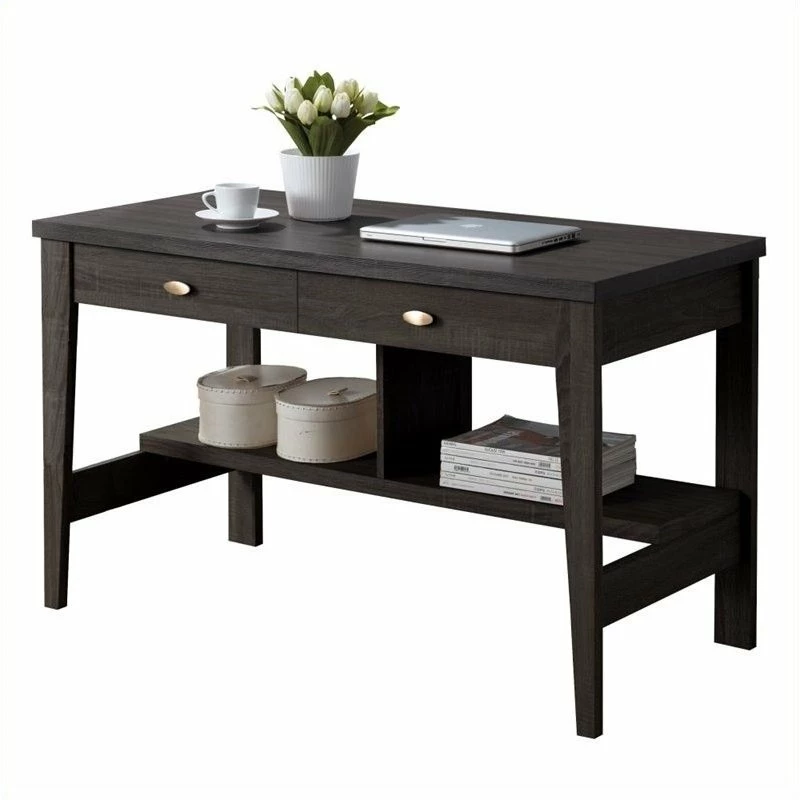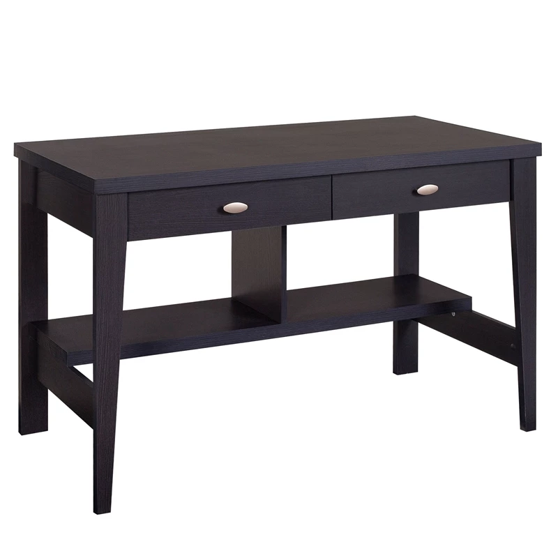 Add a touch of style in your home with this inviting desk from the Pemberly Row Collection. This functional item is featured in our rich espresso engineered wood finish with imitation antique nickel pulls. Featuring two drawers where you can tuck your laptop out of sight and a lower shelf with extra storage space, timeless in style so it easily fits in a variety of decor settings. The desktop offers plenty of room to spread out homework or rest a laptop. The perfect practical addition in your home offering great value.