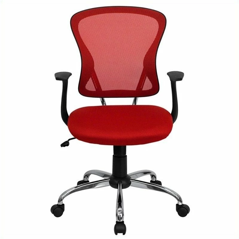 Having the right chair in your workspace is essential for your performance and well-being. Investing in a good task chair increases productivity, promotes good posture and gives a professional look to any office. This red task chair is adjustable to accommodate many different body types. The breathable mesh back allows air to circulate to keep you cool. The colorful, generously padded mesh seat will add a vibrant, lively look to your space as well as keep you comfortable. A mid-back office chair offers support to the mid-to-upper back region. The waterfall front seat edge removes pressure from the lower legs and improves circulation while the arms take pressure off the shoulders. Chair easily swivels 360 degrees to get the maximum use of your workspace without strain. The pneumatic adjustment lever will allow you to easily adjust the seat to your desired height. The chrome base adds a stylish look to complement a contemporary office space. With its attractive styling and versatility, this chair is an excellent choice for the office, dorm, classroom or home.