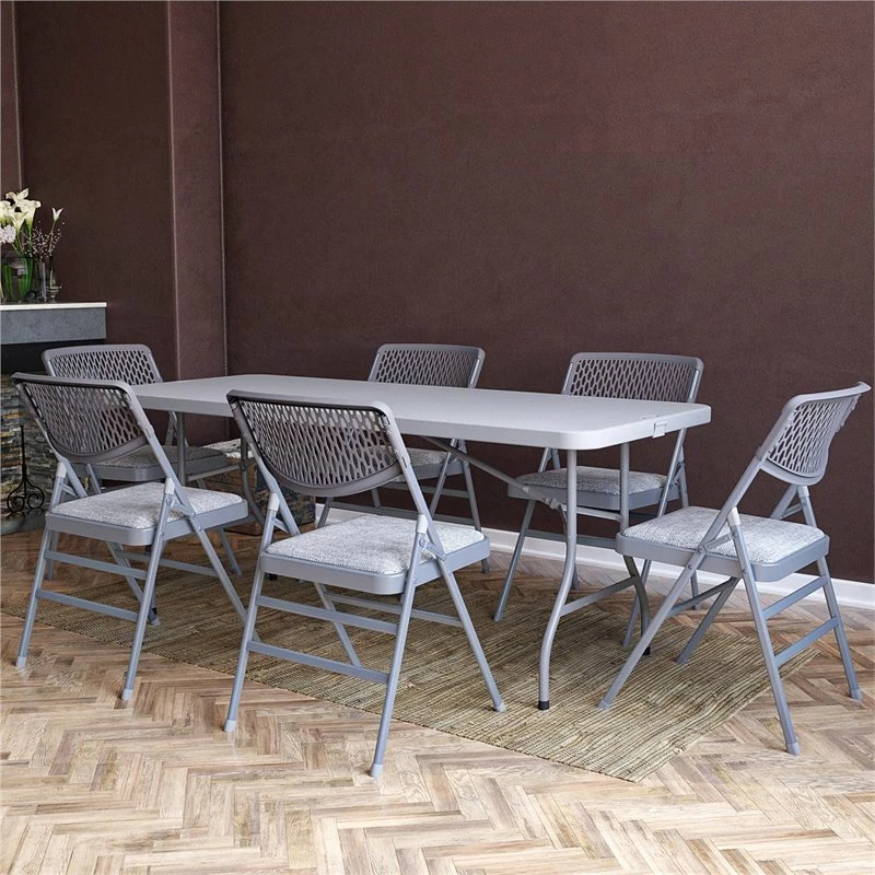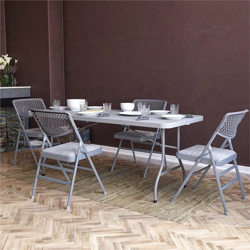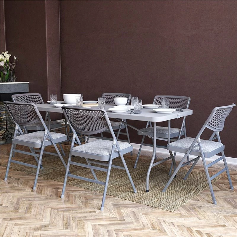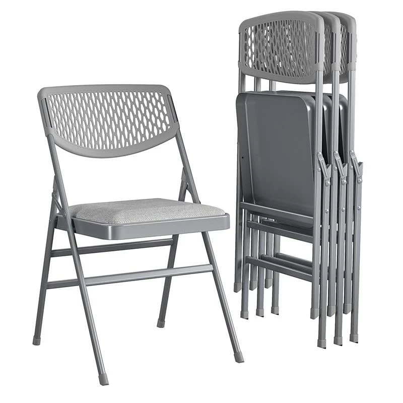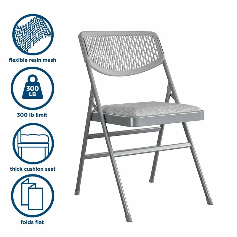 Pemberly Row Ultra Comfort Fabric and Resin Mesh Folding Chair is a great seating option for any event! Featuring a resin mesh back, this chair offers flexibility to keep you cool and comfortable. The fabric padded seat measuring 17 in. x 17 in. contains extra padding for comfortable seating for any occasion. Constructed of high quality resin, a powder coated steel frame, and three cross braces this chair offers stability with a 300 lb. weight capacity. Make your hosting duties easier with durable, comfortable chairs that fold and store in a breeze. Comes standard with a 5 year limited warranty.