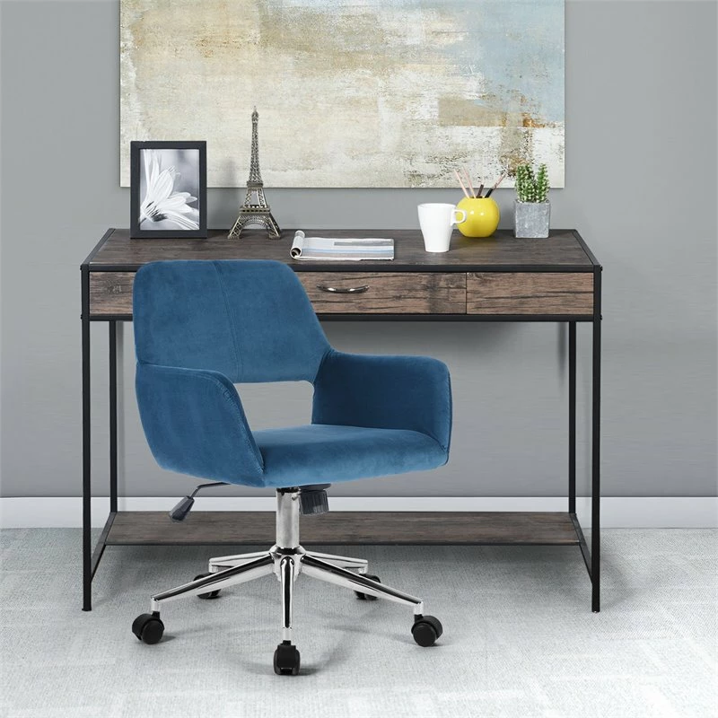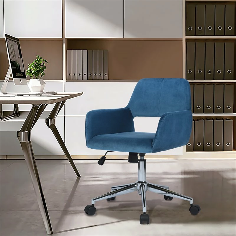 Equally stylish behind an office desk or in your bed space, the modern fabric velvet chrome task chair will always make you feel right at home. Open back and seat upholstered in foam and covered with a soft and pleasant velvet fabric, this office chair brings you exceptional comfort. Adjustable seat height, 360-degree swivel, and 5 nylon casters offer much working flexibility and efficiency within your workspace. This desk chair is available in a variety of solid hues to go with your existing color palette, which is suitable for most of your work scenarios such as study room, bedroom, Home office.