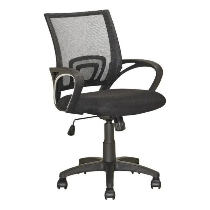 Style your home desk with the convenient LOF-309-O office chair from Pemberly Row featuring a fabric seat, contoured tilting mesh back support, gas lift and black legs with rolling wheels. The comfortable, contemporary design will accent any desk setting while offering the option to adjust to your desk height and body shape with ease. A great addition to any home!