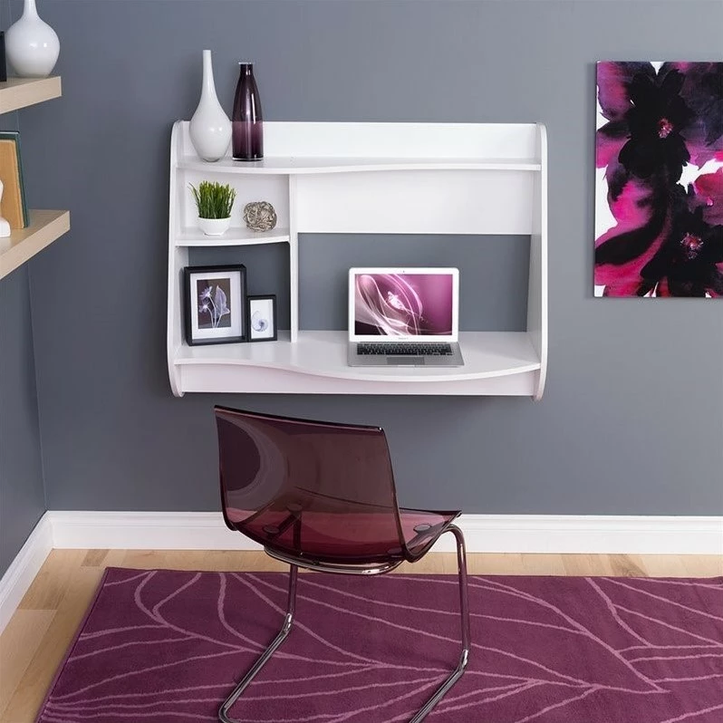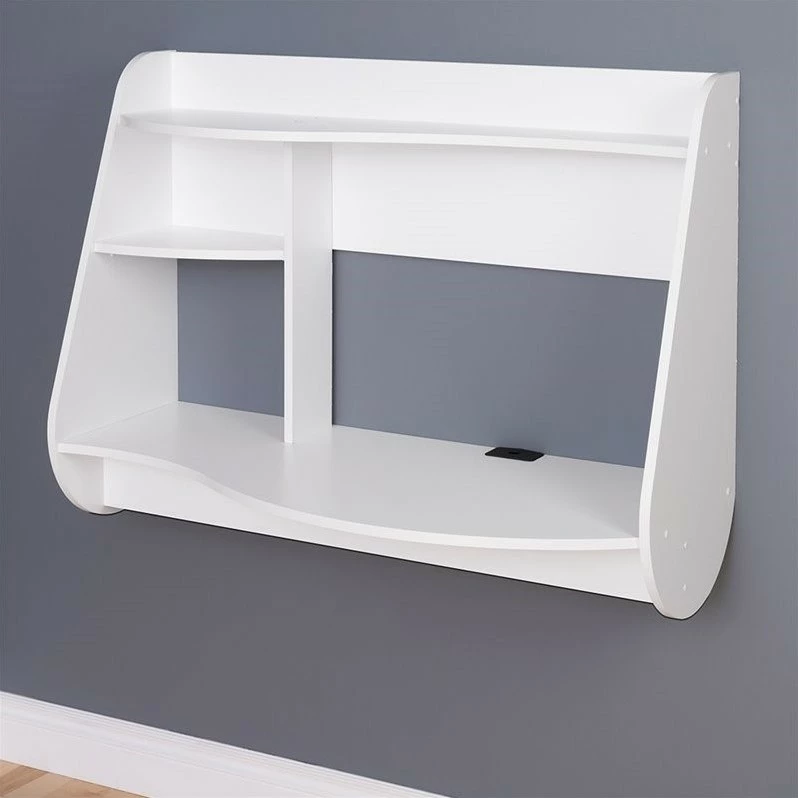 Soft contours and modern lines complement each other in the Kurv floating desk, making it a space-saving statement that will stand out in any room. The lightweight design makes assembly and installation a breeze. Kurv hangs directly on your wall with Prepac’s innovative cleat system, saving you valuable floor space. The spacious side compartments are just the right size for your important binders, books or anything else you may need close at hand, with removable shelves to store taller items.