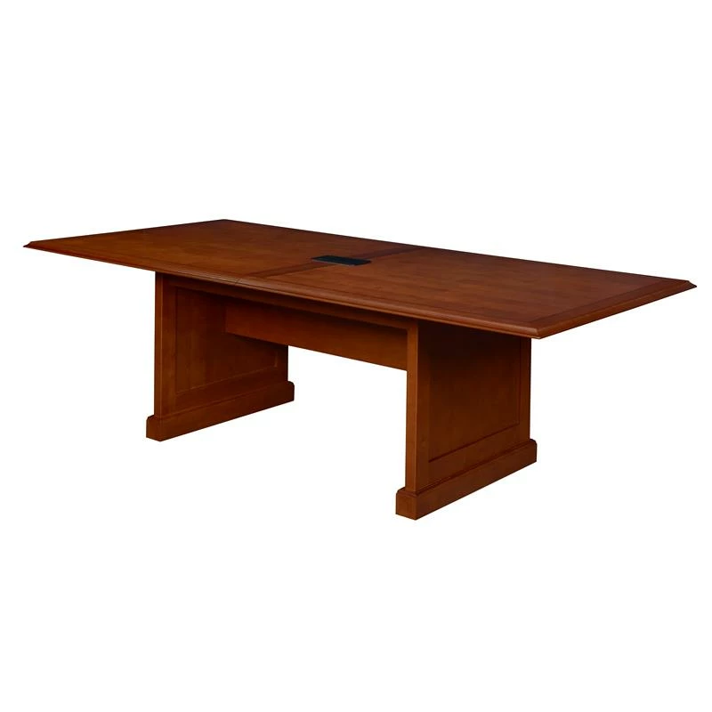 Outfit your executive or home suite with a tradition that lasts. Regency’s Prestige Collection combines the quintessential elements of traditional elegance with classic lines, solid wood trim, beveled edge details and rich hand-rubbed Cherry veneer finishes. Meet in luxury with Prestige conference tables. Tasteful, two-tone inlaid edge detailing and alternating wood grains set these tables apart. A Power and Data Port makes tabletop connectivity easy. The Power/Data port includes (2) USB 2.0 ports, (2) USB charging ports, (2) AC 125V 60Hz outlets, (1) front/rear ethernet port, (1) front/rear phone port and has a black cover plate for a neat, clean look.