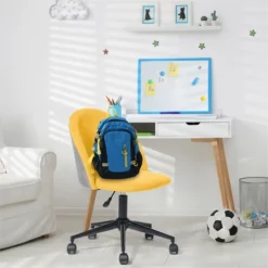 FurnitureR Dudley Swivel Seat Fabric Upholstered Office Chair In Yellow