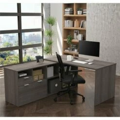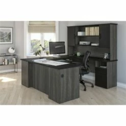 Bestar I3 Plus L Shape Computer Desk With Hutch In Bark Gray