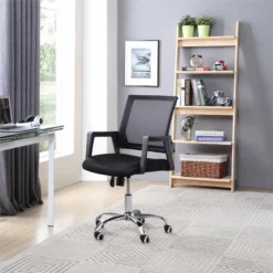 Hodedah Mesh Mid-Back Adjustable Height Office Chair In Black Fabric