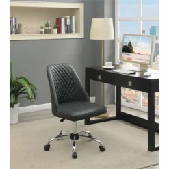 Maklaine 22.6″ Transitional Velvet Office Swivel Chair In Navy
