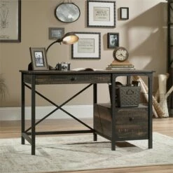 Sauder Steel River Writing Desk In Carbon Oak And Black