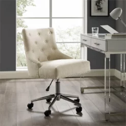 Pemberly Row Velvet Office Chair With Adjustable 360 Degree Swivel In White