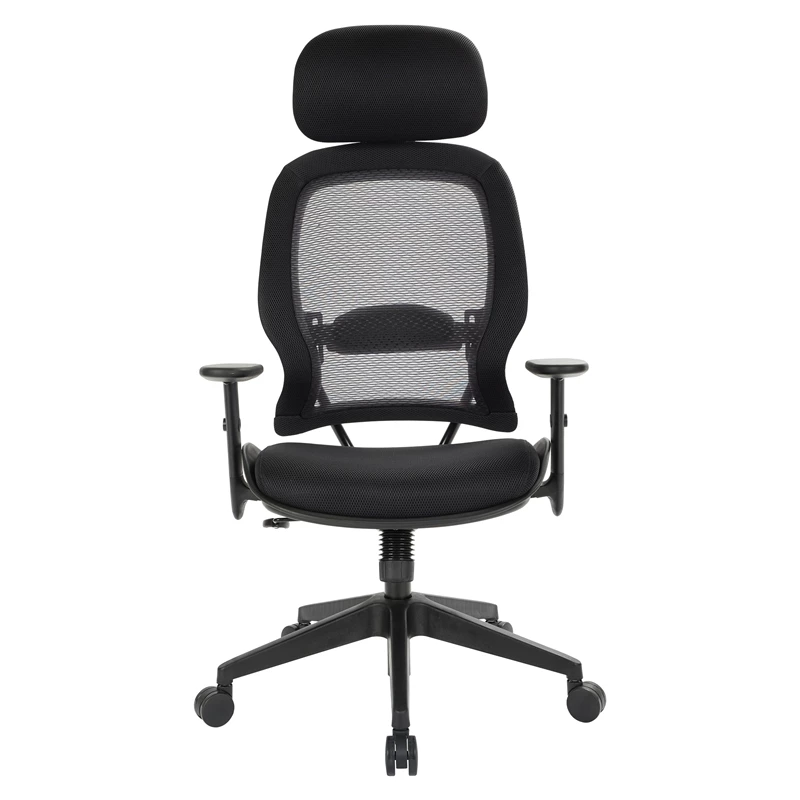 - Thick padded contour seat and air grid back with adjustable lumbar support