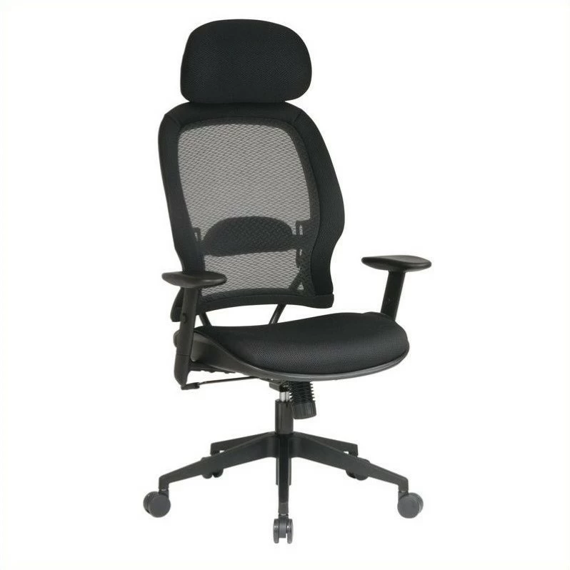 Professional AirGrid Black Back and Mesh Fabric Seat Chair with Adjustable Headrest