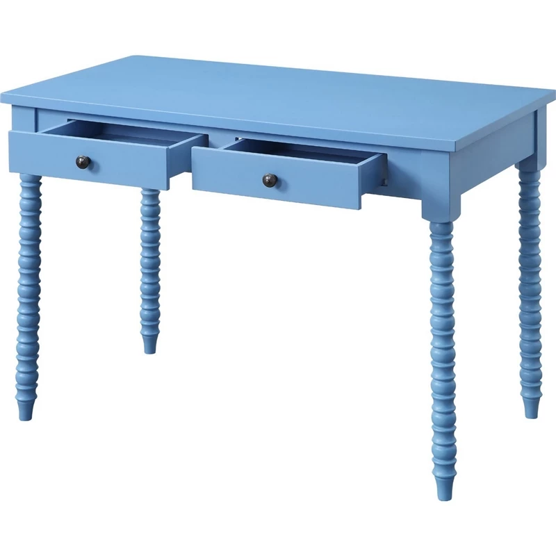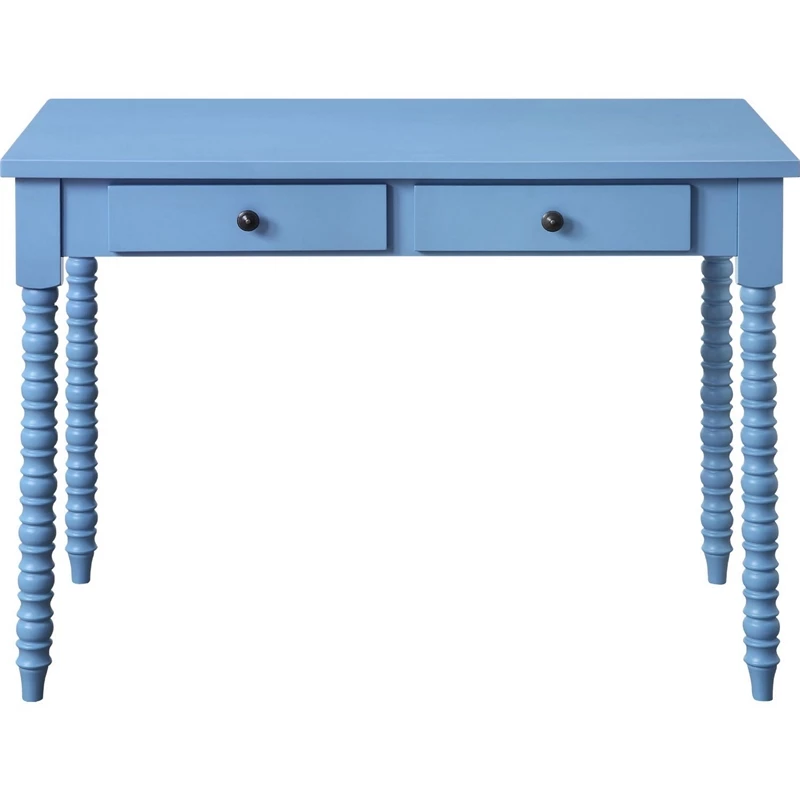 A beautiful and elegantly furnished blue wooden writing desk with storage drawers to style any corner of your home. This versatile piece can be placed in your study or drawing room for a stunning display and practical use to store and display your books, paperwork, and many other belongings. It is extremely comfortable to work on and very easy on the eyes.