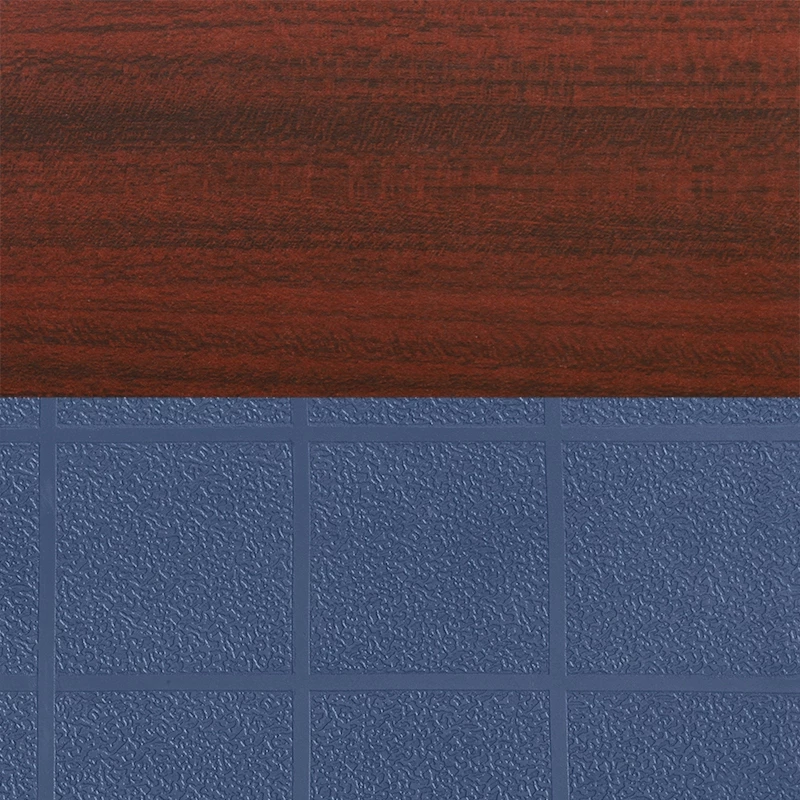 - The table is constructed of a thermal fused melamine Mahogany laminate tabletop that is 1-inch thick and finished with a black edge band.